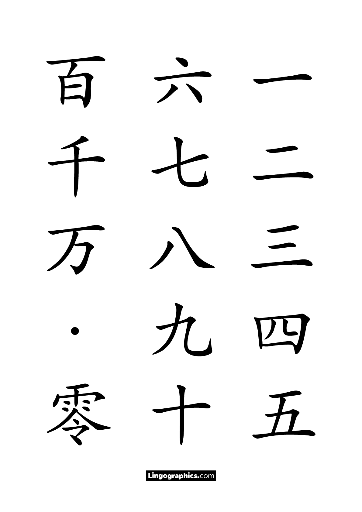 Kanji for Numbers 1 – 10,000 and Zero Kanji for Japanese numbers 1-10; 100; 1,000; 10,000, and 0. Download PDF Choose format: pdf a4 color light Downloaded 23652 times pdf a4 color dark Downloaded 4658 times pdf a4 photocopiable Downloaded 4326 times png color light Downloaded 3052 times png color dark Downloaded 3144 times png color black&white Downloaded 3370 times Lingographics2021-01-17T01:35:54+00:00January 17th, 2021|Categories: Japanese|Tags: Numbers, Numerals, Writing Systems| Related Posts JLPT N1 Kanji March 21st, 2025 | 0 Comments Grade 1 Kanji October 17th, 2022 | 0 Comments JLPT N2 Kanji October 10th, 2022 | 2 Comments JLPT N3 Kanji September 20th, 2022 | 1 Comment JLPT N4 Kanji September 17th, 2022 | 0 Comments Kanji for Numbers 1 – 10 January 21st, 2021 | 0 Comments JLPT N5 Kanji (Custom order) September 29th, 2018 | 3 Comments Katakana Cheat Sheet September 24th, 2018 | 2 Comments Hiragana Cheat Sheet November 19th, 2015 | 0 Comments Japanese Hiragana and Katakana Chart / Cheat Sheet (Side by Side) May 19th, 2015 | 0 Comments Japanese Katakana Chart May 2nd, 2015 | 2 Comments Japanese Days of the Week November 11th, 2014 | 0 Comments Hiragana Chart August 22nd, 2014 | 5 Comments Leave A Comment Cancel replyComment